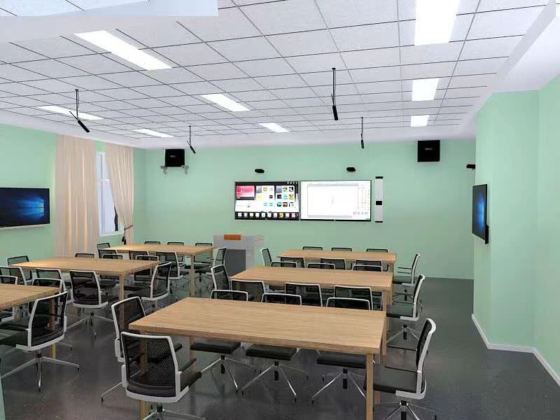 “智慧教室”具有智能化的環境控制和硬件設施。電腦、投影、燈光、窗簾和空調等硬件設備能夠實現一鍵式操作和智能控制。減輕了老師的操作負擔,設備管理人員可以遠程控制和維護設備。教室采用可移動式桌椅,便于分組教學,每個小組配備了顯示大屏,各個屏幕之間能夠實現多屏互動。教師可獨立錄制完成某一節課的課堂教學內容,無需另請公司或購買設備進行課程錄制,減少了人力和經濟成本。錄制的視頻可用于微課演練,方便督導專家觀看教師教學實況,精準把脈,對癥下藥。另外,教師還可在智慧教室完成某個知識點講解視頻的錄制,上傳到線上教學平臺,方便學生反復觀看。同時,“智慧教室”具有教學大數據收集和分析功能,實現教學分析和教學督導的數據化、智能化和全面化。避免傳統模式下采樣數據少,主觀成分多的弊端,實現精準化的教學評估及管理。