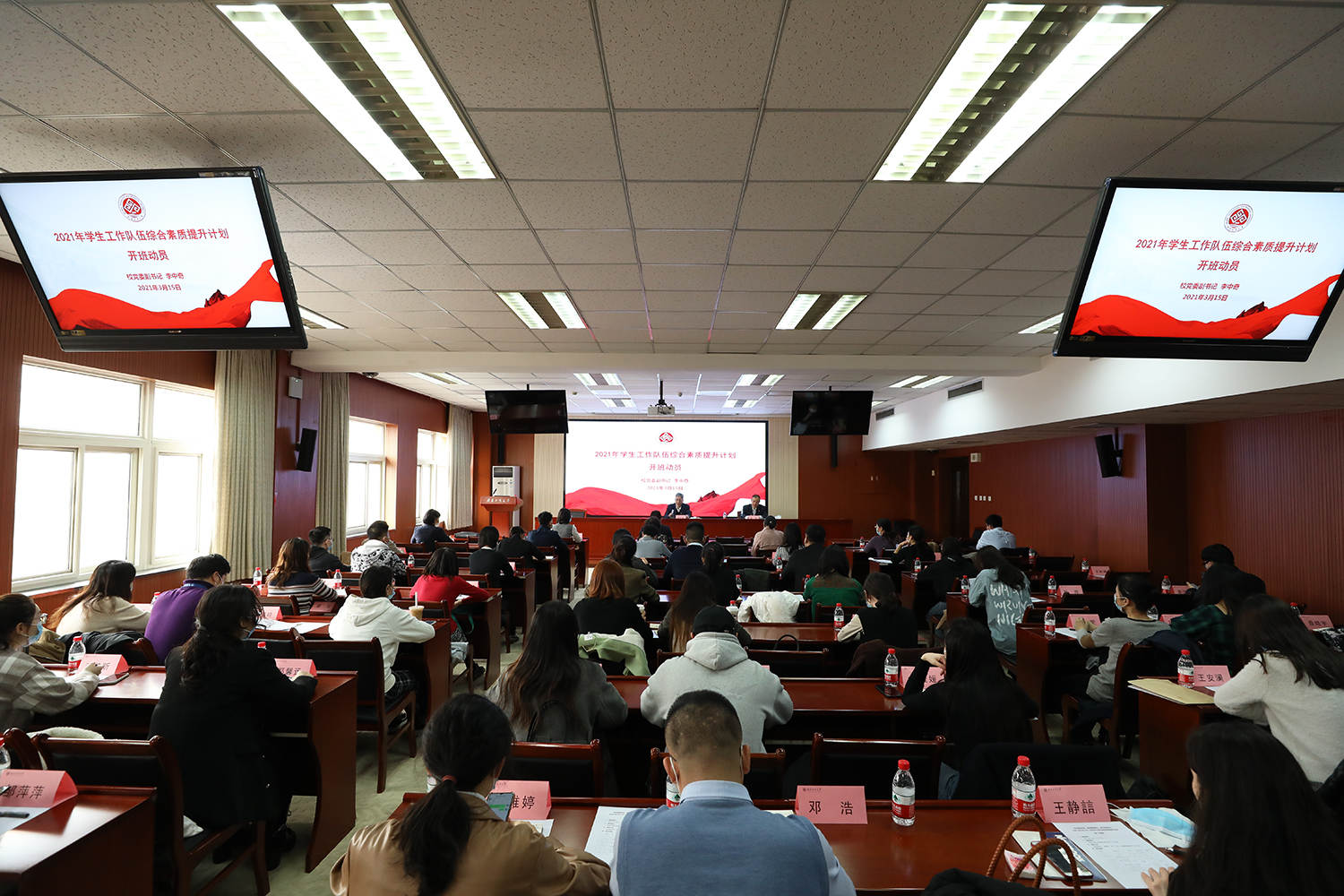 為進一步強化輔導員隊伍建設(shè),提升學生工作隊伍凝聚力、戰(zhàn)斗力,3月15日至16日,學校開展“堅定理想信念、提高素質(zhì)能力、勇于擔當作為”2021年學生工作隊伍綜合素質(zhì)提升計劃。學校黨委副書記李中奇作開班動員。各學院黨委副書記、輔導員及學生工作部、研究生工作部、團委等職能部門工作人員參加第一次培訓。