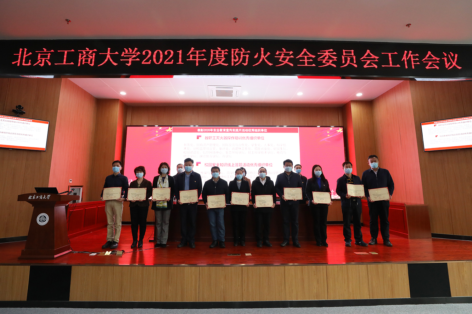 保衛(wèi)處副處長(zhǎng)尹寶星做《北京工商大學(xué)2020年學(xué)校消防工作總結(jié)與2021年消防工作要點(diǎn)》報(bào)告。會(huì)議對(duì)教職工滅火器操作培訓(xùn)優(yōu)秀組織單位和校園安全知識(shí)線(xiàn)上答題活動(dòng)優(yōu)秀組織單位進(jìn)行表彰。
