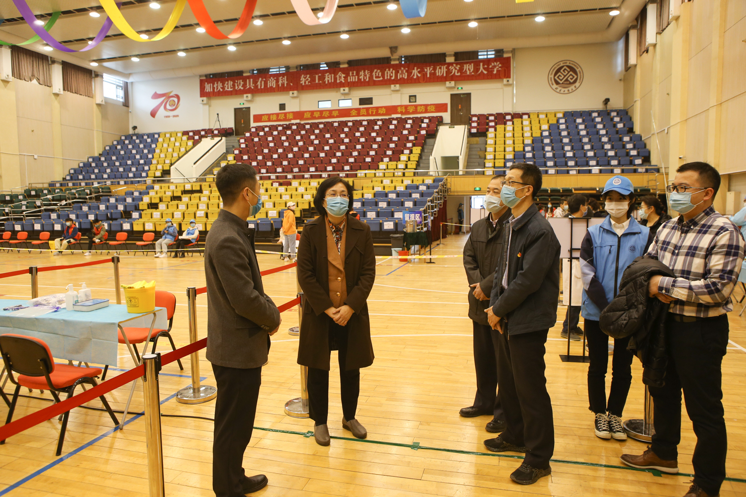 校黨委書記黃先開帶頭在良鄉校區接種。寒假期間,我校阜成路校區首次集中接種時,校長孫寶國,黨委副書記王偉、李中奇,黨委常委、副校長張耘等已完成接種,在校教職工654人完成接種。