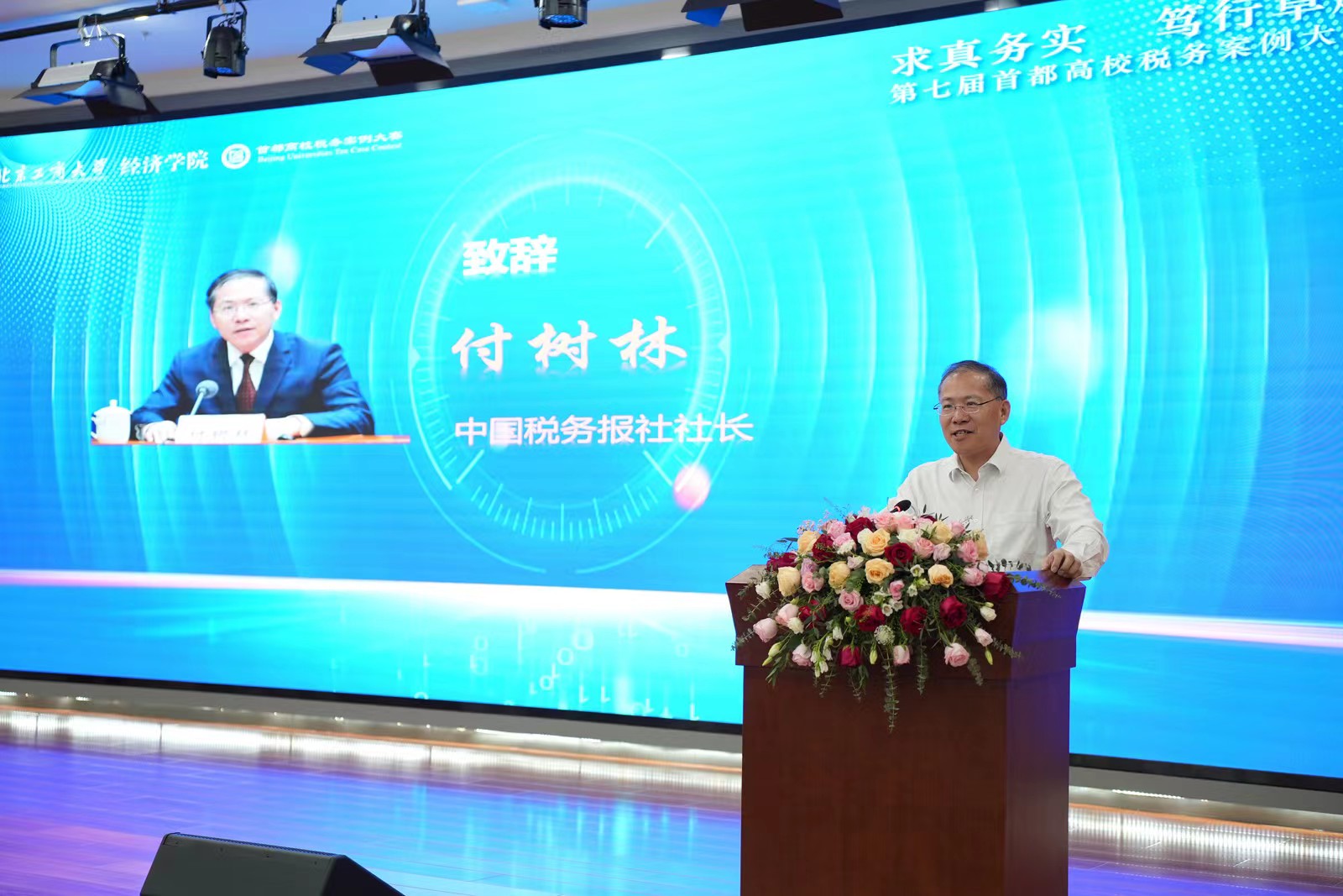 付樹林在致辭中用八個“越來越”精辟概括了當前中國稅收現代化的變化趨勢:稅制改革越來越深、稅費政策越來越善、征管體制越來越順、征管手段越來越智、稅費服務越來越優、稅收監管越來越嚴、國際影響越來越大、隊伍素質越來越高。付樹林強調,面對龐大的服務管理對象,面對高質量推動中國式現代化的稅收實踐,高素質的稅收人才不可或缺。高校是培養稅務人才的搖籃,通過辦好稅務案例大賽,吸引越來越多的同學關心、研究、宣傳、從事稅收工作,為國聚財、為民收稅。