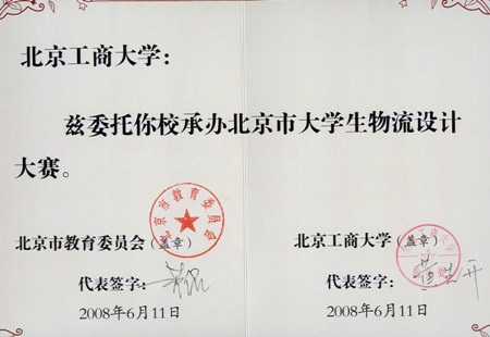 經過各高校申報和北京市教育委員會的評審,6月11日,北京市教育委員會確認我校為北京市大學生物流設計大賽承辦單位。