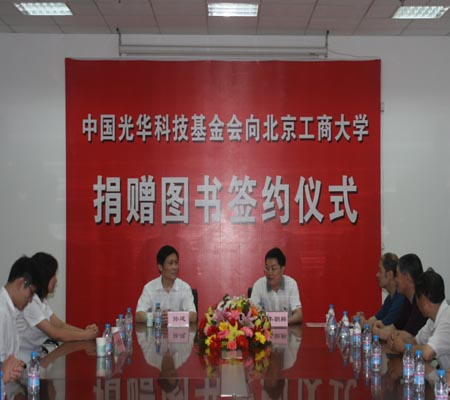 孫建主任簡要介紹了“中國光華科技基金會公益書海工程”啟動近三年來支持國家文化建設,向社會各界捐贈圖書的情況。中國光華科技基金會是在民政部登記注冊的全國性科技類公募基金會,業(yè)務主管單位為共青團中央。孫建主任說,圖書館是為人們提供文化營養(yǎng)和精神食糧的場所,能為北京工商大學圖書館捐贈圖書,支持學校的文化建設感到十分榮幸。