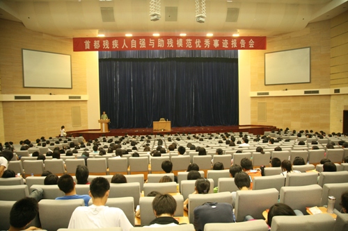 首都?xì)埣踩俗詮娕c助殘模范優(yōu)秀事跡報告深深感動了我校奧運志愿者,他們紛紛表示要向首都?xì)埣踩俗詮娕c助殘模范優(yōu)秀事跡報告團(tuán)的成員學(xué)習(xí),以更高的熱情服務(wù)奧運,為北京奧運貢獻(xiàn)自己的全部力量。