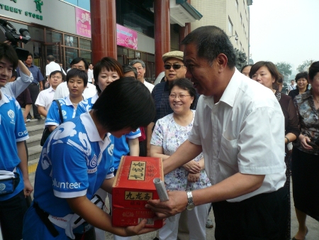據(jù)隊(duì)長王勇峰介紹,除了他是一直留在北京外,其他3名隊(duì)員都是昨天剛到達(dá)北京。“親身感受了一下這些志愿者的服務(wù),我覺得非常親切。有這些優(yōu)秀的年輕志愿者們,我們的奧運(yùn)一定會成功。”王勇峰說道。志愿者戚力為是北京工商大學(xué)大二的學(xué)生,他見到這些登頂珠峰的隊(duì)員們十分興奮,他對記者說:“王隊(duì)長對我們的工作內(nèi)容很感興趣,他詢問了急救箱中所存藥品的種類,還詳細(xì)了解了我們的工作流程。當(dāng)他知道我們還提供指路服務(wù)時(shí),他就問我怎樣才能找到崇文區(qū)的酒吧。我們就用筆記本電腦搜索出結(jié)果給他看,他感到非常滿意。”
