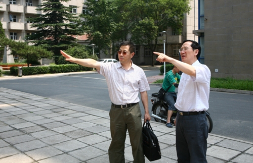 7月15日中午,校長譚向勇、副校長王尚忠到阜成路東校區(qū)開展平安奧運檢查工作。校領導詳細檢查了阜成路東校區(qū)學生公寓、施工中的留學生公寓、南平房和1號樓,并對檢查中發(fā)現(xiàn)的問題提出整改要求,要求相關部門盡快予以解決。