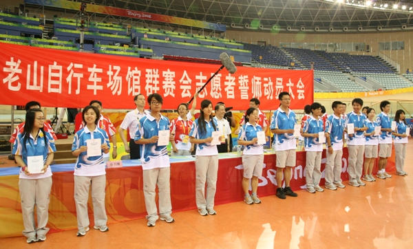 奧組委志愿者部副部長張巨明希望志愿者盡其所能為奧運提供熱情、文明、專業(yè)、得體的服務,承擔起服務奧運的光榮使命,為祖國、為老山場館增添榮譽。