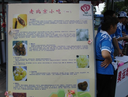 “了解北京要從了解北京風土人情開始,要從了解北京的小吃開始。我們想通過這樣的方式讓更多的人了解中國,讓世界共同‘品嘗’中國的味道,共同感受北京人的熱情。”金域大廈站點的一位志愿者興奮的談著他們開展這項活動的初衷。我校化工學院金域大廈站點的志愿者們集思廣益,結合專業(yè)特色,推出獨特的老北京美食咨詢服務。志愿者們利用休息時間制作了精美的展板,驢打滾兒、面茶,糖耳朵……詳實的注解配上精美的彩圖,不時引來外地來京游客的駐足。