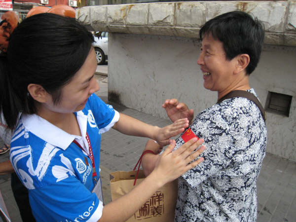 “您好,需要我們為您服務嘛?”在這親切的問語和燦爛的微笑中,會計學院的城市志愿者們開始了奧運服務的每一天。