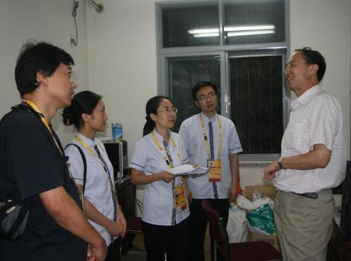 8月12日晚,我校黨委副書記、校奧運籌辦與賽時保障指揮部常務(wù)副總指揮盧思鋒風(fēng)塵仆仆,趕到駐地看望全體帶隊老師。住宿服務(wù)團(tuán)隊領(lǐng)隊董竹娟等帶隊老師在駐地辦公室向盧思鋒副書記匯報目前及下一階段的工作。