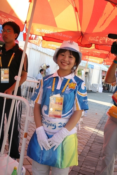 在所有業務口中,交通業務口志愿者服務的環境是比較艱苦的。每天最早來到場館的志愿者是他們,最晚離開場館的志愿者也是他們。在戶外工作難免會遇到惡劣天氣,但是盡管現在烈日炎炎,在遮陽傘下,我們看到的依然是三張熱情的笑臉。也許這就是志愿者最可愛的地方吧,也許沒有空調,但是他們有微笑;也許看不到比賽,但是通過他們的服務他們能讓比賽進行得更順利。