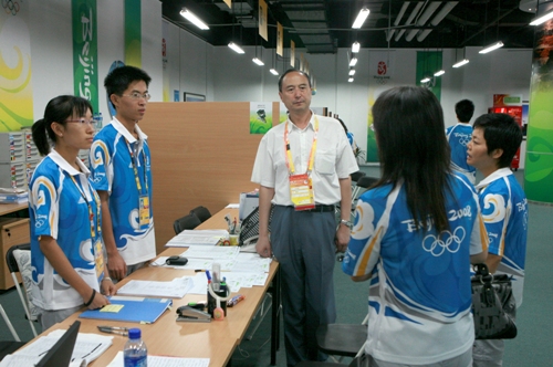 8月16日,奧運賽程已經過半,我校黨委副書記、校奧運籌辦與賽時保障指揮部常務副總指揮盧思鋒代表學校領導,赴奧運村看望了我校志愿者。團委書記呂素香、志愿者領隊文四英老師陪同并介紹我校志愿者的工作狀況。