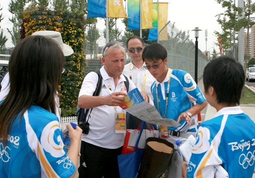 志愿者們熱烈歡迎盧思鋒的來訪,有的志愿者將自己平時工作用的奧運村地圖送給書記,希望他以后常來看望大家;有的贈送了自己總結整理的服務用語,展示自己的工作成果;有的還將在工作中獲贈的禮物,來自荷蘭的工藝品等贈送給了盧思鋒。盧書記對同學們的心意表示深深的感謝。由于工作不能脫崗,四號門的志愿者輪流前來接受慰問,在烈日下往返近四十分鐘。大家看到盧思鋒感到十分親切,表示自己將認真服務,堅守崗位,總結經驗,更好地為殘奧會服務。盧思鋒風趣幽默地鼓舞大家“苦不苦,想想站崗日當午,累不累,想想北京奧運會”。 他希望大家能夠在這個短暫的假期中快速成長,得到歷練。