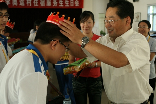 此次座談會恰巧又是8月份住宿服務(wù)生們的生日會,伴著“生日快樂”的歡快節(jié)奏,張德玉副書記和8月份的“小壽星”服務(wù)生們一同度過了這個具有特殊意義“奧運生日”。會場上,充滿了感動與溫暖,張德玉親自為服務(wù)生們在帶上生日帽、合唱生日歌、還為“小壽星們”送上小禮物。張徳玉在送上生日祝福的同時,對帶隊老師們?yōu)閵W運服務(wù)生在業(yè)余生活、精神鼓勵上付出的辛勤勞動表示充分肯定。