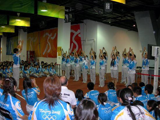 為了體現(xiàn)“兩個(gè)奧運(yùn)同樣精彩”的要求,完美詮釋“同一個(gè)世界 同一個(gè)夢(mèng)想”的主題,殘奧會(huì)開(kāi)幕式的互動(dòng)工作對(duì)互動(dòng)指揮志愿者的要求提升到了新的高度。在殘奧會(huì)開(kāi)幕式動(dòng)員和培訓(xùn)之后,各大隊(duì)分組進(jìn)行練習(xí),鞏固學(xué)習(xí)成果,并在全體互動(dòng)指揮志愿者面前進(jìn)行表演。