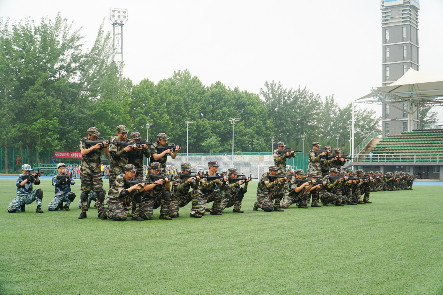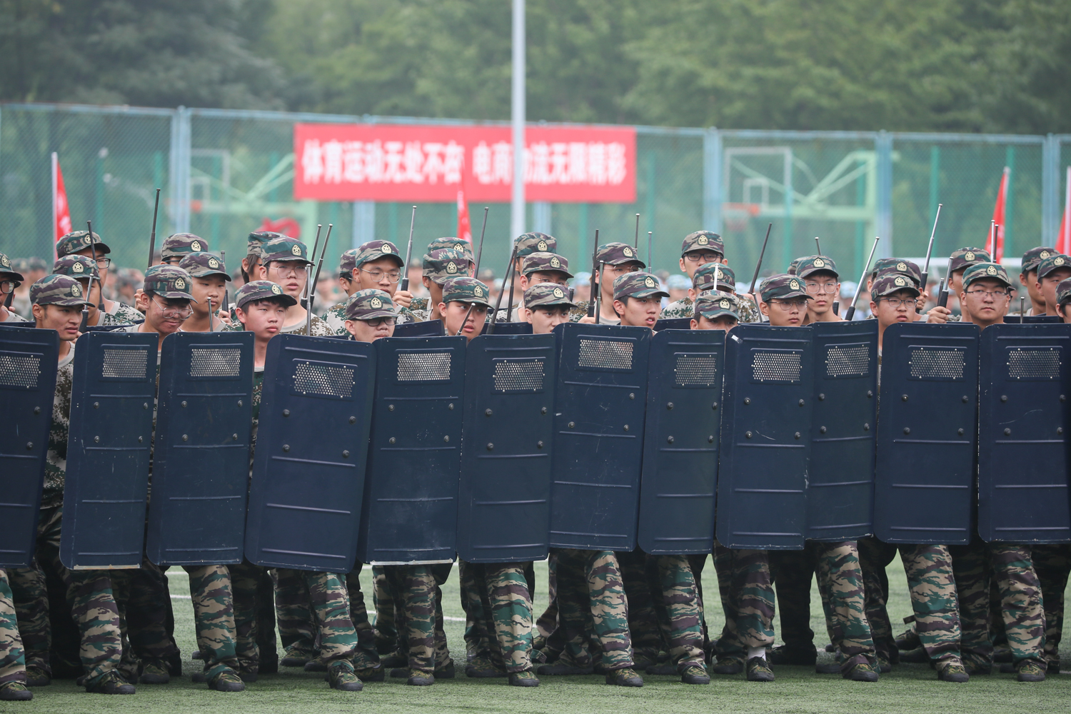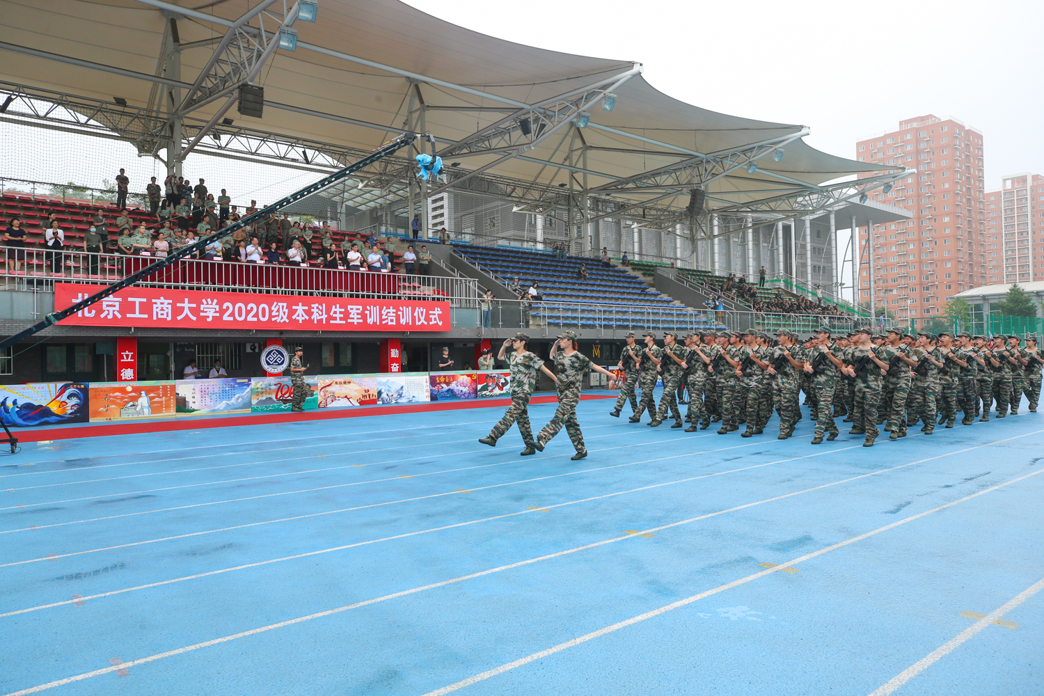 在2020級本科生軍訓成果展示中,同學們以高昂的士氣、嚴整的軍容接受檢閱。來自6個營的18個方隊踏著激昂的《中國人民解放軍進行曲》依次經過主席臺,進行分列式表演。隨后進行軍事科目表演,同學們分別進行了隊列表演、匕首操、警棍盾牌操、旗語操、擒敵拳、綜合戰術演練。同學們堅毅的眼神、鏗鏘的腳步、洪亮的口號彰顯了新時代北工商學子青春昂揚的精神風貌,贏得了在場領導和老師們的陣陣掌聲與一致好評。