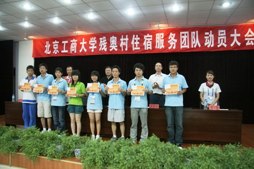 中油陽光酒店集團鄭靜執行副總助理為同學們在轉換期所付出的辛勞表示感謝。她感慨到:當她問及一位同學是否感到疲勞時,那位同學說“服務奧運會一生只有一次,服務殘奧會一生也只有一次,我們會用同樣的熱情服務殘奧會!”短短的幾天鄭總已經被我校學生在日常工作中表現出的優良品質深深打動。相信“陽光牽手工商大學,精誠合作再創輝煌!”