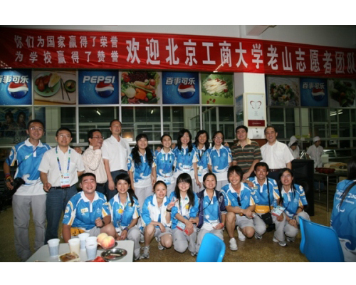 飲食服務中心為志愿者準備了豐盛的自助餐。宴會開始前,孫堯東書記為全體志愿者致詞。孫書記對我校志愿者在奧運志愿服務工作中的出色表現給予了高度的贊揚。他表示,我校志愿者無與倫比的服務為學校贏得了榮譽,為北京贏得了榮譽,為中國贏得了榮譽,為首都大學生贏得了榮譽。他對志愿者們表示衷心的感謝,感謝志愿者們能夠克服困難,順利完成了奧運會與殘奧會的服務任務。他還對全體志愿者提出了殷切的希望,希望志愿者們在以后的日子里能夠繼續發揚志愿服務的精神,自覺奉獻社會,回報祖國。隨后,浙江團省委副書記徐旭作了講話。在講話中,他對北京工商大學對浙江省志愿者的悉心照顧表示感謝,并為雙方志愿者的融洽相處感到高興,他特別指出,浙江省與北京工商大學應該進一步加強交流與合作。隨后,孫堯東與盧思鋒為全體浙江省志愿者頒發了場館紀念徽章,并與他們合影留念。
