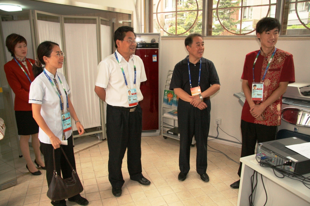 上午9時許,孫堯東一行人在校學生處處長董竹娟、校團委書記呂素香和副書記文四英的陪同下,先后到我校服務生志愿者所在崗位看望在那里工作的學生們。董竹娟分別向領導介紹了住宿服務生的工作職責和殘奧村服務與奧運村服務的區別等基本情況,文四英向領導匯報了我校不同崗位志愿者的工作內容。