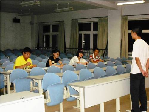 在招新過程中,擔(dān)任評委的學(xué)生干部們認(rèn)真地對每一位來面試的新生進(jìn)行了考試,而同學(xué)們在考場上也表現(xiàn)得非常精彩,體現(xiàn)了2008級新生們對學(xué)生工作的積極參與。