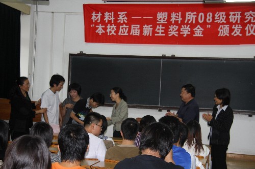 會場里喜氣洋洋, 08級研究生王秋艷、柯偉席、李陽博三位同學手捧獎學金,臉上洋溢著快樂、激動與興奮。紛紛表示一定不辜負老師的囑托,努力學習,爭取以優異的成績回報老師教育培養之恩。
