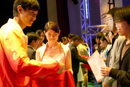 學校黨委副書記盧思鋒宣讀了北京工商大學關于表彰對奧運服務優秀團隊、先進集體和優秀個人的嘉獎令。與會領導、佳賓和奧運冠軍楊楊、仲滿、平亞麗為獲獎代表頒發了獎牌和證書。