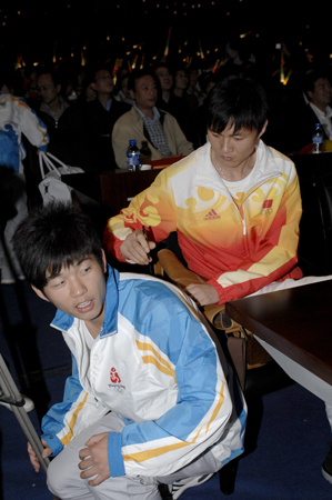 志愿者請(qǐng)奧運(yùn)冠軍簽名留念