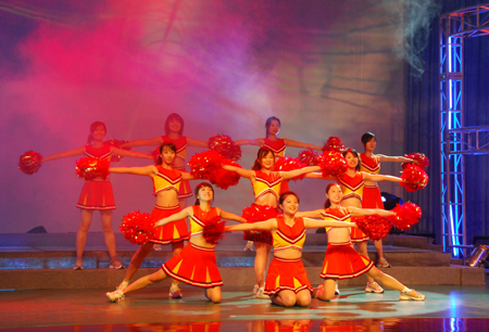我國(guó)首位冬奧會(huì)冠軍楊揚(yáng)在主席臺(tái)上同志愿者互動(dòng)