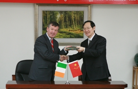 10月13日下午 我校譚向勇校長、孫寶國副校長在良鄉行政樓315會議室親切會見了愛爾蘭國考克大學校長邁克爾· 墨菲訪問團,賓主雙方就兩校未來的合作進行了深入的交談并達成了廣泛的共識,兩位校長簽署了兩校合作總協議。此協議翻開了我校與愛爾蘭考克大學向全方位,多層次合作交流的新篇章。