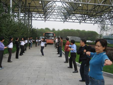 數理系的老師們也為運動會準備了廣播操表演,那一定也不遜于年輕人的表現。整齊劃一的動作,嚴肅認真的神情也讓大家為之贊嘆不已。讓我們為數理系鼓掌歡呼,讓我們迎著奧運風波走上運動場,揮撒我們青春靚麗的風采,展現我們自信張揚的個性。