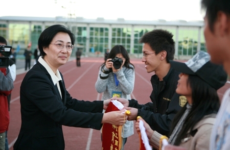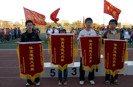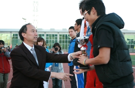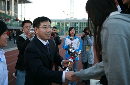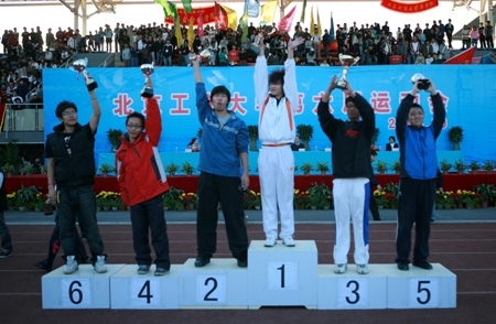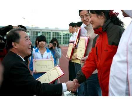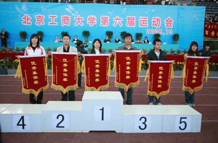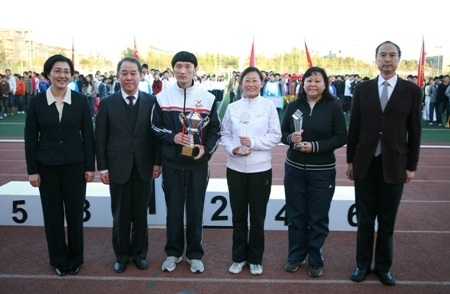 10月25日下午4:30分,我校第六屆運動會閉幕式在良鄉(xiāng)校區(qū)體育場舉行,副校長孫寶國主持閉幕式。校領導孫堯東、盧思鋒、張耘、王尚忠分別為獲得團體總分前六名、教工團體總分前六名、入場式優(yōu)秀集體獎、體育道德風尚獎以及教工廣播操前三名的團體頒發(fā)了獎杯及獲獎證書。各獲獎單位代表站在領獎臺上充滿喜悅和自豪,代表隊和觀眾席上不斷傳來為獲獎單位祝賀的歡呼聲,整個運動場到處都傳遞著師生同收獲 ,參與最光榮的和諧之音。