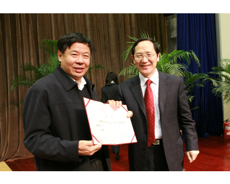 校長(zhǎng)譚向勇向朱光耀部長(zhǎng)助理頒發(fā)兼職教授聘書