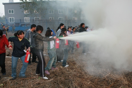 此次活動旨在通過演習提高廣大師生員工的防火安全意識,讓我校師生員工掌握火場逃生的基本方法,學會如何使用滅火器和消防栓。11月6日16時30分,演習總指揮、校黨委副書記盧思鋒下達了“119”消防演習開始的命令。隨著現(xiàn)場模擬火災煙霧升起,伴隨著急促的警報聲,同學們用濕毛巾捂住口鼻迅速有序地從煙霧彌漫的宿舍樓中撤離到安全區(qū)域。疏散演習后,師生員工還觀看了房山區(qū)良鄉(xiāng)消防隊表演的“消防班進攻”。并在良鄉(xiāng)消防隊官兵的指導下進行了實際滅火演練。