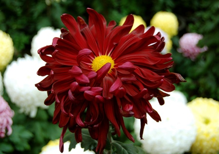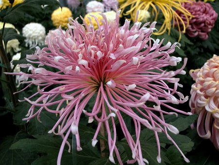 我校農(nóng)藝師張秀山在菊花栽培上有獨(dú)到之處,從北京乃至全國(guó)都有較高的知名度。二十幾年長(zhǎng)盛不衰,連續(xù)十四屆獲得北京高校菊花展第一名,二十余次參加北京市菊花展,并獲得150多個(gè)獎(jiǎng)項(xiàng)。還多次代表北京市出席全國(guó)菊展、全國(guó)花卉博覽會(huì)、世界花卉博覽會(huì)。91年在香港世界花、鳥、魚、蟲博覽會(huì)上獲金獎(jiǎng),“99'昆明世博會(huì)”獲得金、銀、銅獎(jiǎng)牌六塊,為北京爭(zhēng)得了榮譽(yù),更為我校贏得榮譽(yù)。