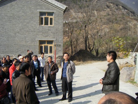 大家來到位于門頭溝區妙峰山鎮的櫻桃溝村參觀,意外地碰到了我校經濟學院07年畢業生趙振,他畢業后一直在櫻桃溝村當村官。看到學校老師來村里參觀趙振格外高興,在他的講解下,大家了解了櫻桃溝村發生的巨大變化。由于地處山區耕地少,且交通不便,過去村民生活很困難。前些年在村支書(轉業軍人)的帶領下,村民根據本村所處的地理位置,海撥適中、氣候溫涼、晝夜溫差大、光照充足、溫暖濕潤、特殊的“冷湖”氣候以及富含礦物質的山泉水,栽種了適宜生長的大櫻桃,產出的大櫻桃果實個大、多汁、風味佳,而且營養價值極高,是水果中的珍品,榮獲第五屆中國北京國際科技產業博覽會金獎,特級大櫻桃的價格達到了每斤480元。村里每年5月下旬至6月下旬舉辦櫻桃采摘節,可接待游客上萬人次,櫻桃產量6萬余斤,僅櫻桃一項收入就達到600多萬元,年人均分紅1萬元。同時,村委會注重開發民俗旅游,以歷史文化遺跡仰山棲隱禪寺和名人故居莊士敦別墅為招牌,打造民俗文化重點村,不斷開拓和發展旅游市場,村里現有3個上規模的旅游接待山莊,日總接待游人可達幾百人。櫻桃溝村走的是股份制道路,全村年經濟總收入1275萬元,人均純收入1.6萬元以上。自2004年被列入北京市城鎮規劃建設試點村后,村委會統一規劃別墅式住宅戶型,面積都在200、300平米以上,上下水系統一應俱全,并采用清潔環保的太陽能取暖,實現電話、寬帶入戶,整個舊村改造工程總計投資5000多萬元。該村被評為2007年北京最美的鄉村。
