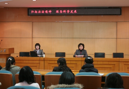 相關鏈接:本次專題報告會是學校為開展今年“12.4”法制宣傳日宣傳活動而安排的系列活動之一。2001年,黨中央、國務院批轉的《中宣部、司法部關于在公民中開展法制宣傳教育的第四個五年規劃》規定,將我國1982年憲法實施日——12月4日,作為全國法制宣傳日。今年的12月4日是第八個法制宣傳日,其主題是“弘揚法治精神,服務科學發展”。前七個法制宣傳日的主題分別是:第一個法制宣傳日,“增強憲法觀念,推進依法治國”;第二個法制宣傳日,“學習宣傳憲法,推進民主法制建設”;第三個法制宣傳日,“依法治國,執政為民”;第四個法制宣傳日,“弘揚憲法精神,增強法制觀念”;第五個法制宣傳日,“弘揚憲法精神,構建和諧社會”;第六個法制宣傳日,“落實‘五五’普法規劃,促進和諧社會建設”;第七個法制宣傳日,“弘揚法治精神,推進依法治國”。