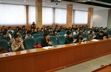 報告會上,周寶妹教授在一個半小時里向與會人員闡釋了《就業促進法》的基本內容、頒布的意義及如何運用該法促進就業等三個大問題。她談到,《就業促進法》是一個民生之法,是一個和諧之法。它用解決民生之本的法律來規范就業,來促進就業。解決就業問題作為政府的主要職責,對于促進社會的安定團結,對于促進社會各階層的和諧都會起到重大的作用。