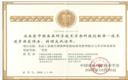 此外,我校參加的該項目獲得了中國食品科學(xué)技術(shù)學(xué)會科技創(chuàng)新獎—技術(shù)進(jìn)步獎一等獎,課題負(fù)責(zé)人陳存社博士獲得獎勵證書。