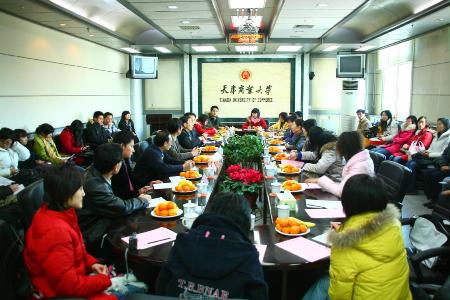 抵達天津后,考察小組一行人等首先來到了兄弟院校天津商業大學,這是當天考察的第一站。在多功能會議廳,天津商業大學副校長滕建輔、研究生部主任姜子濤、研究生部副主任趙建洪以及部分研究生學生干部盛情接待了我校研究生部考察小組一行,隨后雙方進行了親切的座談交流。在座談中,天津商業大學副校長滕建輔首先向我校研究生部考察小組表示歡迎,隨后介紹了天津商業大學近年來的學校發展狀況、學科建設進展、招生規模、畢業生就業形勢等方面的情況。天津商業大學研究生部主任姜子超,向考察小組介紹了本校研究生招生規模、培養機制、就業渠道、專業設置等方面的情況。董竹娟在隨后的講話中,對天津商業大學的盛情款待表示了衷心感謝,她簡要介紹了我校研究生部的各項工作的運行和進展狀況,并向天津商業大學研究生部師生發出了盛情邀請,希望他們有機會也來我校參觀考察,加強交流,促進合作,攜手發展,共同進步。兩校的學生組織代表也進行了交流探討,我校研究生部宣傳中心還特意將最新出版的《研究生》雜志贈與天津商業大學研究生部。交流座談之后,考察小組在天津商業大學研究生部副主任趙建洪的帶領下,參觀了天津商業大學校園。