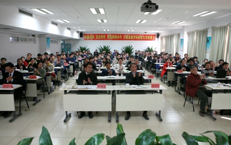 副校長謝志華作了題為《轉換機制,突出特色,提高科研水平 為建設教學研究型大學努力》的主題報告。他在報告中回顧了我校5年來的科研工作,分析了我校科研工作存在的問題及成因,明確了近期科研工作的指導思想、基本原則和發展目標,提出了科研工作的保障措施。他強調,學校要以創建教學研究型大學的目標為統領,以夯實基礎、實現跨越式發展為行動出發點,以學校近期院系調整、實現資源整合為契機,以優化科技資源為抓手,轉換機制,促使科研規模由小向大擴展,科研總水平由低層次向高層次提升,科研成果由數量型增長向數量、質量雙增長拓展,科研主體由研究個體向研究團隊轉變,科研方向由分散零碎向集中整合轉換。