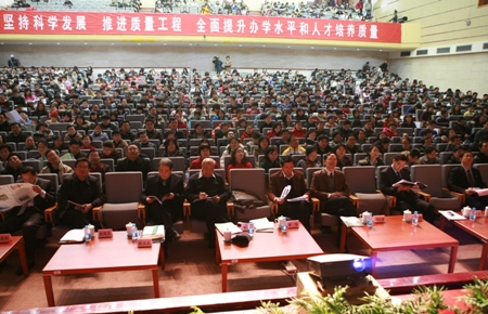 李朝鮮副校長作了題為《堅持科學發展,推進質量工程,全面提升辦學水平和人才培養質量》的主題報告;黃侃處長作了北京市質量工程報告;楊有紅、楊德勇、何明珂三位教授分別做了經驗介紹。畢孔彰發表講話;校長譚向勇最后作大會總結講話。
