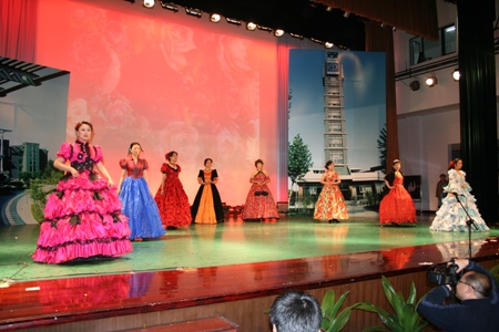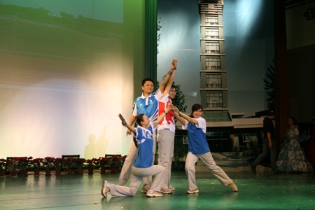 19名中青年教師演繹的改革開放三十年服裝的變化讓臺下的師生眼前一亮。北影廠租來的服裝、鄰居那借來的道具和不同時代大學師生不同生活場景的編排,反映了改革開放三十年來我國大學校園中師生衣著、生活的變化和精神風貌;7名年青教師充分發揮想象力,富有故事情節的表演,引來臺下師生陣陣笑聲。四位青年教師身著奧組委工作人員、賽會志愿者、城市志愿者、社區志愿者服裝向師生們再現了志愿著的微笑和無怨無悔的奉獻精神。由學校圖書館潘潔老師自己設計的晚禮服通過8名女教師的傾情演繹,展示了走進新時代人們的美好生活和靚麗人生。19位中青年教師利用工作之余和周末時間,不厭其煩地進行一次次地排練,一次不拉地參加良鄉文體館彩排。排練和演出中加強了溝通與交流,增進了友誼。