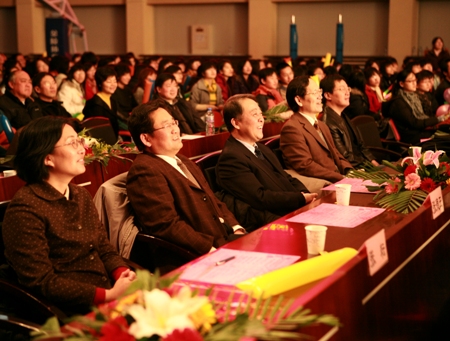 歲值年華,壯志畫宏圖;人逢盛世,工商慶佳節。12月30日下午4點,伴隨著老干部管樂團和學生管樂團演奏的《歌唱祖國》樂曲,校領導孫堯東、譚向勇、張德玉、李朝鮮、張耘步入文體館會場并在前排就坐,與我校1600多名師生共同觀賞了2009年元旦聯歡會的精彩演出。黨委書記孫堯東代表學校致新年賀詞。