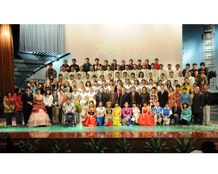 三十年的變遷,翻天覆地。在《改革開放三十年時裝表演》中,通過服裝、道具和情節的變化,并融入舞臺劇的元素,反映了改革開放三十年來,我國大學校園中師生穿著的變化,彰顯不同年代師生們的生活和精神風貌;透過8名女教師身穿的艷麗晚禮服,我們可以看到已經走進時代的中國人民的幸福生活;退休的老干部在夕陽紅音樂的伴奏下款款走來,向我們展示了她們豐富多彩的晚年生活。這個節目是由劉云等退休老干部和王小藝、潘潔等19位老師表演的。
