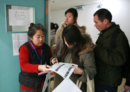 1月10日,2009年碩士研究生入學考試正式開始,我校阜成路考點一早就開始了緊張而有序地工作,所有工作人員都在開考前40分鐘就位;校領導親自到各考場現場指導工作。研究生部在考場周圍掛橫幅、放置溫馨提示牌、考場分布示意圖等,還安排了志愿者咨詢服務崗,同時為考生準備了巧克力、熱水,并為考生提供中午休息的場所。相關部門也積極展開工作給考生營造了一個方便、周到、輕松的考試環境。考生自覺遵守考場紀律,積極配合工作人員確保安全有序。