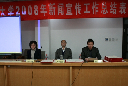 會議發(fā)布了學(xué)校2008年十大新聞,(另發(fā)稿)宣布了2008年學(xué)校新聞宣傳工作先進(jìn)單位和2008年優(yōu)秀通訊員名單,并頒發(fā)了證書和獎(jiǎng)品。