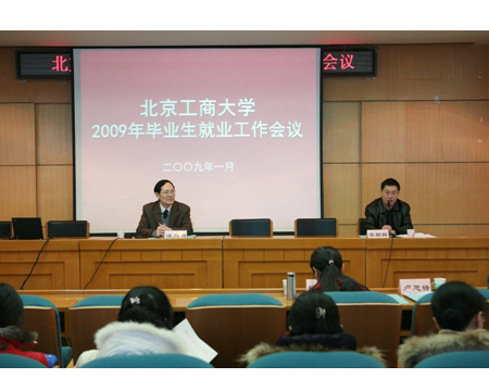 1月14日,學(xué)校在阜成路校區(qū)召開2009年畢業(yè)生就業(yè)工作會(huì)議。校長譚向勇和北京市教委學(xué)生處處長楊文茹出席會(huì)議并作重要講話。黨委副書記盧思鋒作了題為《堅(jiān)定信心 抓住機(jī)遇 迎接挑戰(zhàn)---努力做好學(xué)校2009年畢業(yè)生就業(yè)工作》主題報(bào)告。副校長李朝鮮主持會(huì)議。