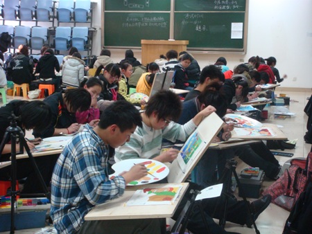 據觀察,大多數考生都有家長陪同。無論是咨詢還是報名,家長都是奮不顧身,沖在前頭,儼然是考生的“經紀人”。孩子在考試,家長在心焦。從上午8點半到下午4點半,素描(含速寫)、色彩考試分別進行,由于考生太多、考試時間較長,加上冬寒未散,家長非常辛苦。一位家長說,他的孩子感冒了,考完要帶他去打點滴,否則會影響參加另一所學校組織專業考試。