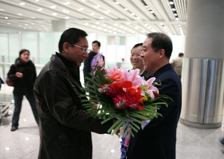 1月19日上午,學(xué)校黨委書(shū)記孫堯東、副書(shū)記盧思鋒、副校長(zhǎng)孫寶國(guó)為我校學(xué)科帶頭人赴加拿大培訓(xùn)團(tuán)送行。2月19日下午,孫堯東同志又一次親自率有關(guān)部門(mén)負(fù)責(zé)人一行前往首都機(jī)場(chǎng),熱烈歡迎學(xué)校首期學(xué)科帶頭人赴加拿大培訓(xùn)團(tuán)的全體團(tuán)員滿(mǎn)載豐碩成果平安歸來(lái)。