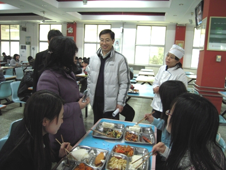 3月11日上午,王尚忠副校長帶領后勤處處長郭一行、后勤黨總支書記龐春生、副處長魏冰、李彥才等10多名管理人員,深入阜成路東區食堂開展調研工作。